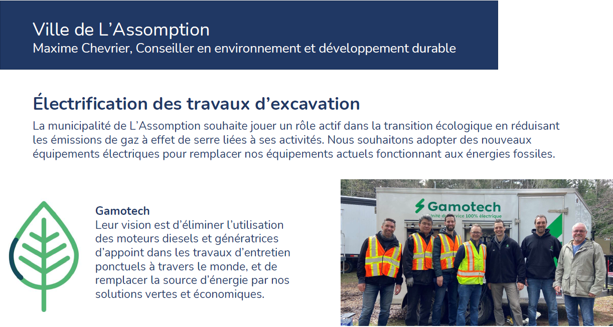Électrification des travaux d'excavation - Ville de L'Assomption Plantation d'une micro-forêt au parc Jean-Claude-Crevier - Ville de Repentigny